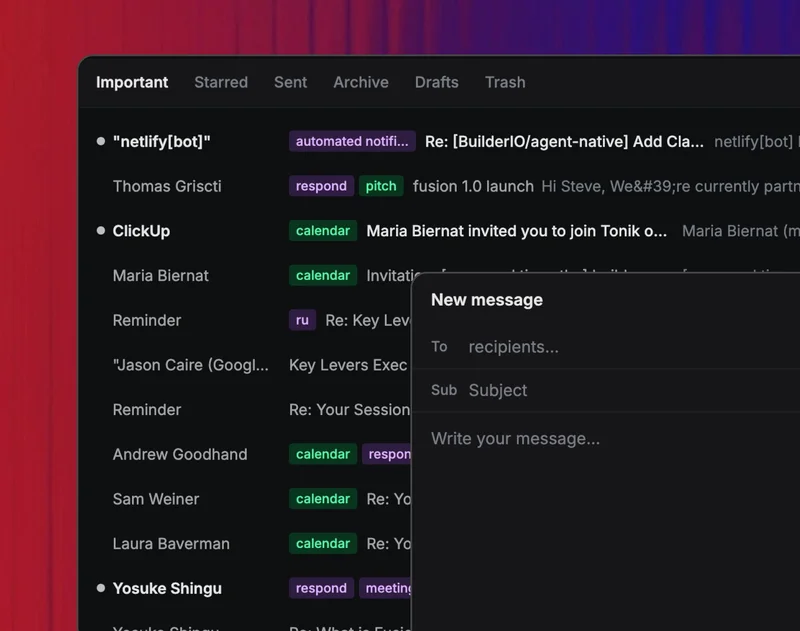 Superhuman-style email client with keyboard shortcuts, AI triage, and a fully customizable interface. Own your inbox workflow.