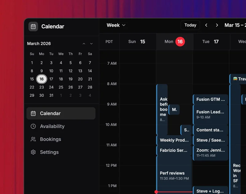 Manage events, sync with Google Calendar, and share a public booking page — all with an AI agent that handles scheduling.